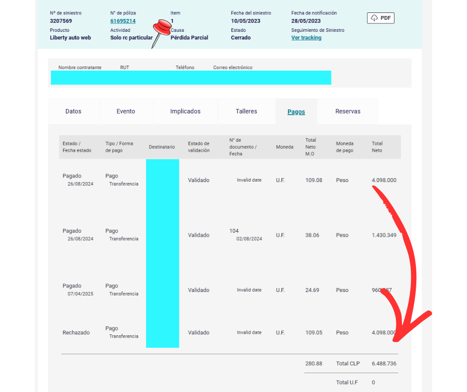 Siniestro número 32075xxxx