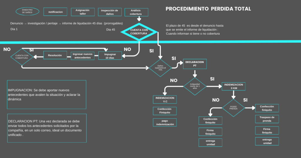 Esta condición puede originarse en un siniestro inicial de daños materiales o en un robo con recuperación del vehículo que, tras evaluación técnica, concluye en daños totales. El flujo puede variar según compañía y condiciones de póliza.